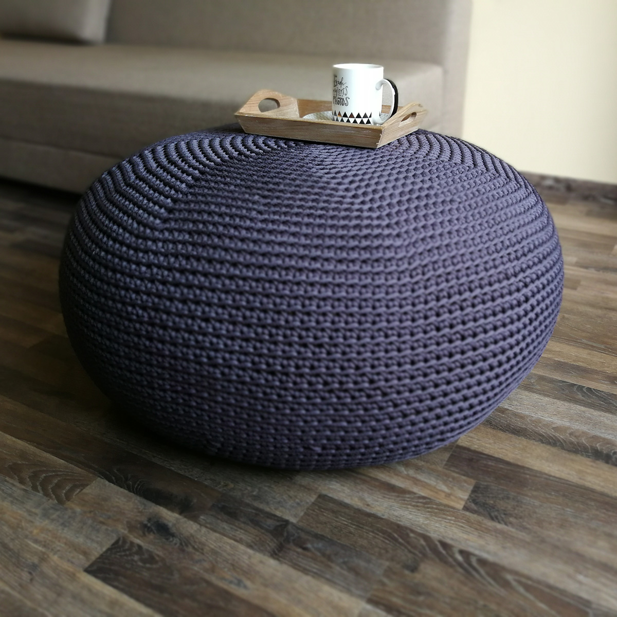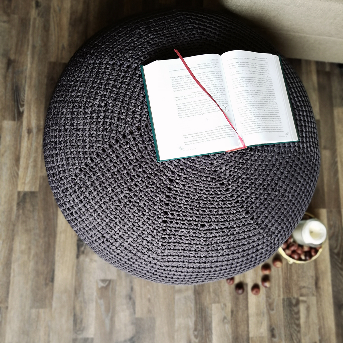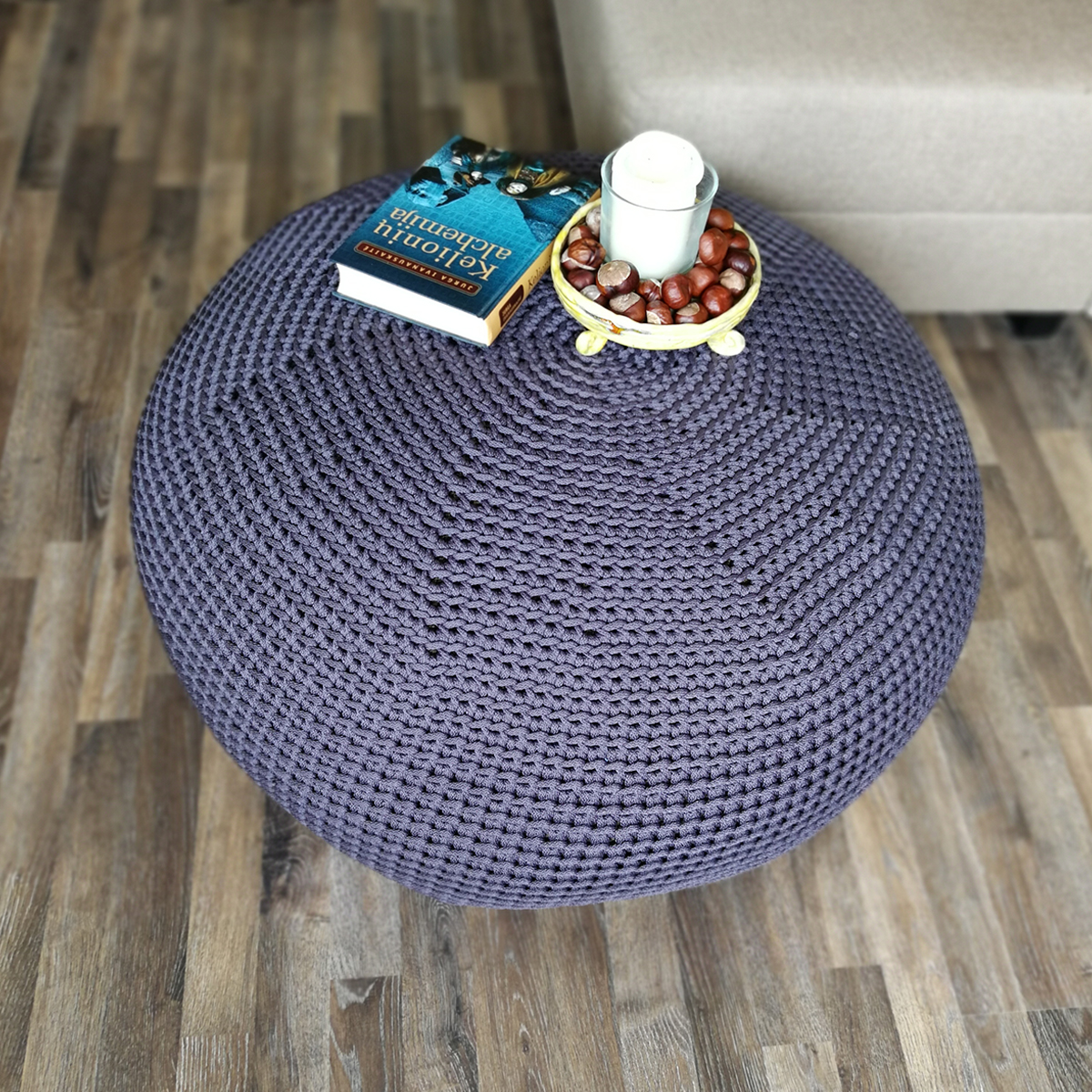 Nertas pufas GALIŪNAS, pagamintas iš patvarios poliesterio virvės, suteiks jaukumo ir patogumo bet kuriam interjerui. Tvirta virvė užtikrina ilgaamžiškumą.