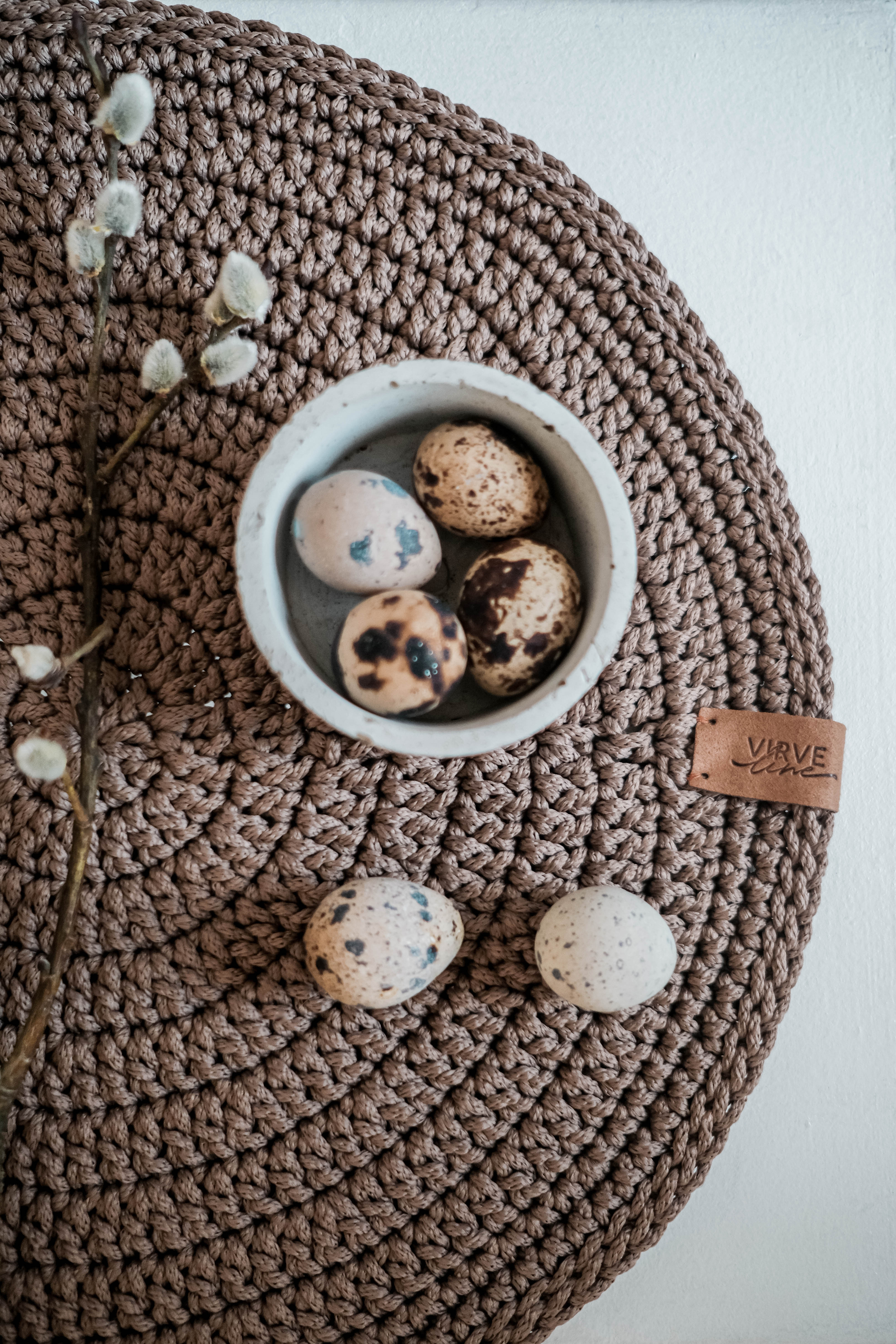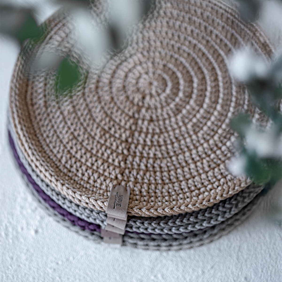 Nerti stalo padėklai / polėkštės iš plonos poliesterio virvės.