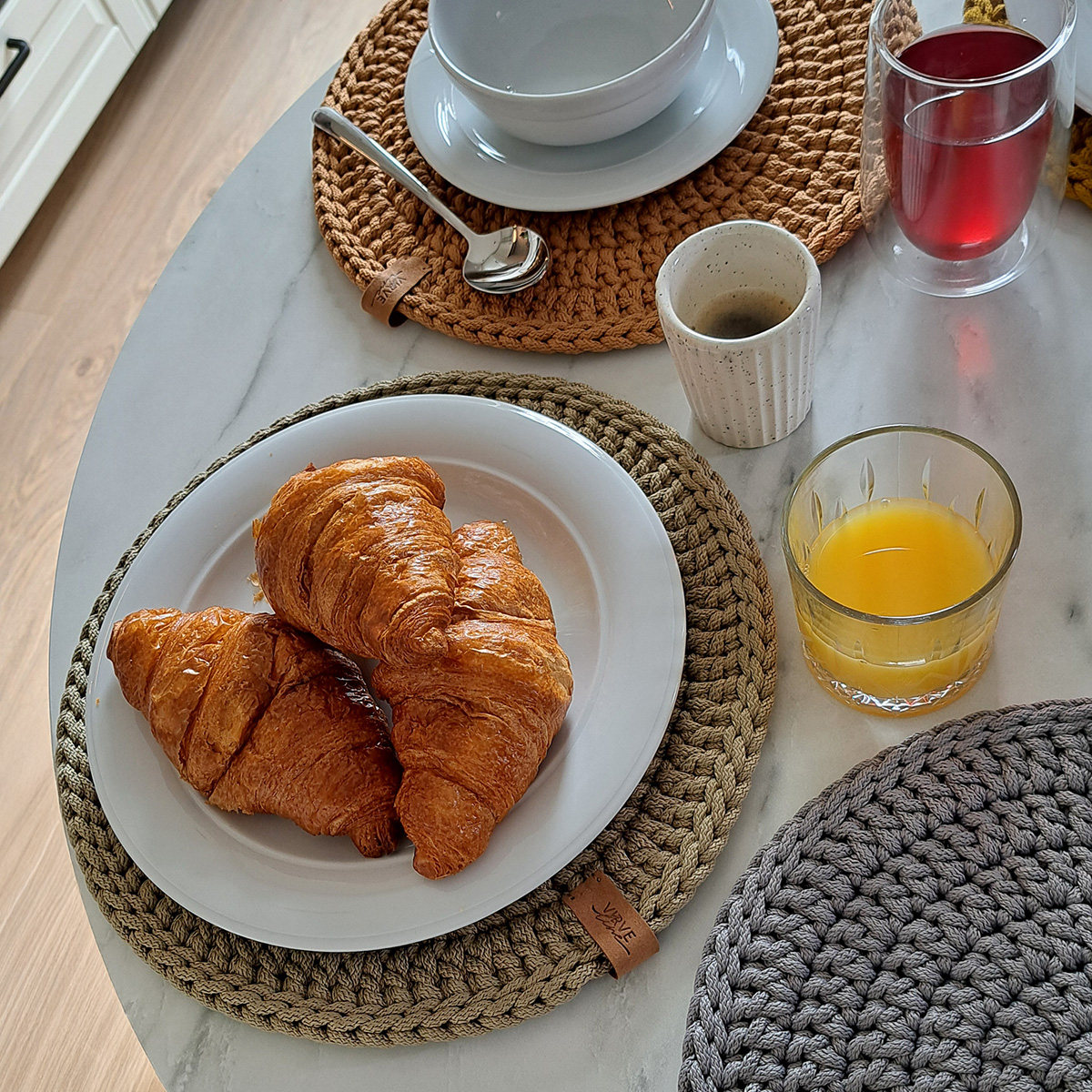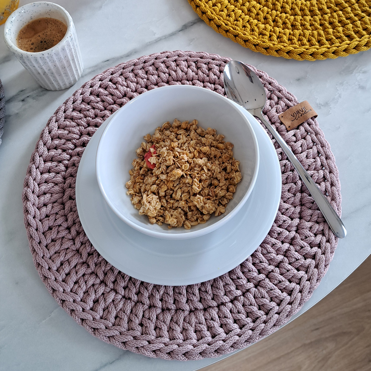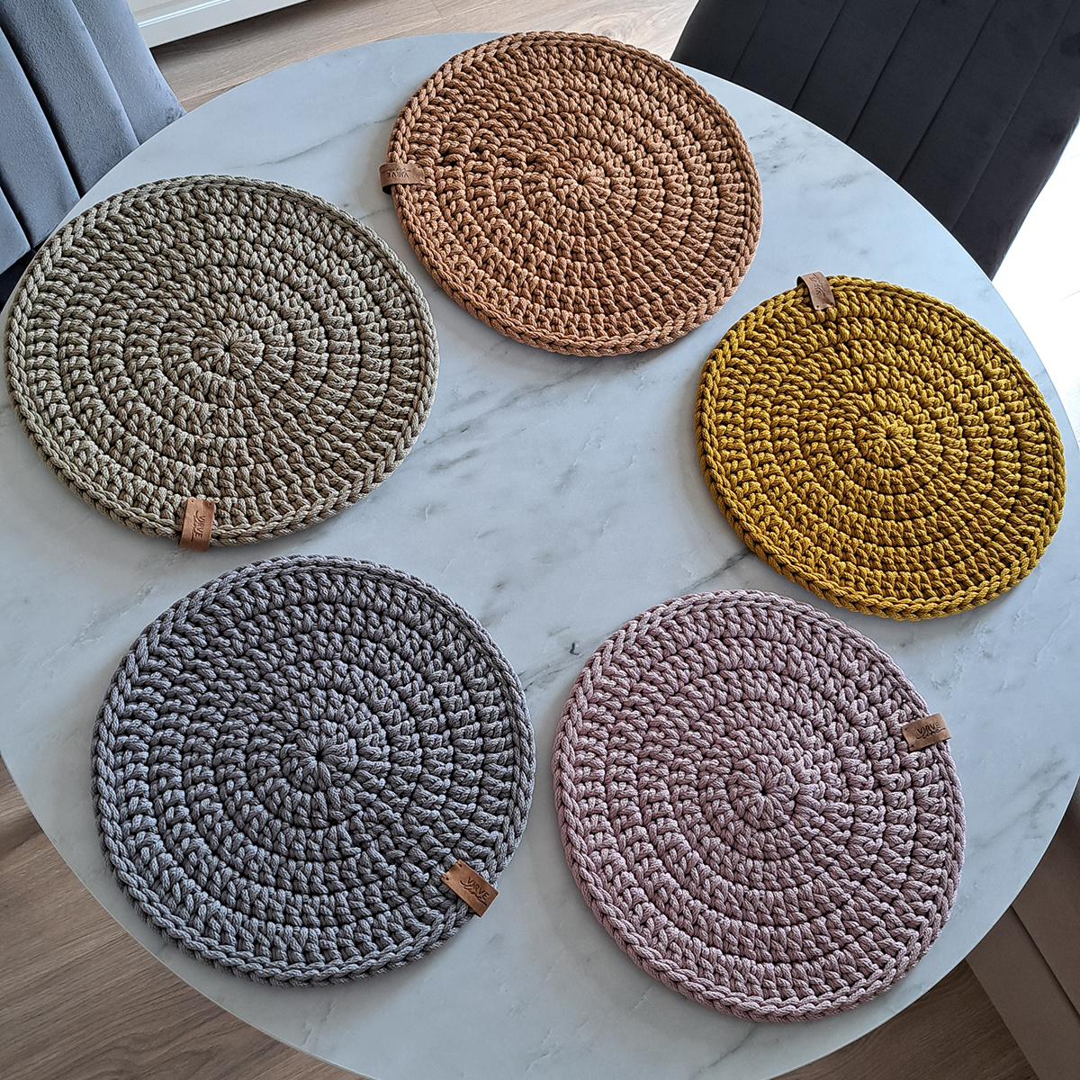 Nerti stalo padėklai / polėkštės iš pastelės spalvų poliesterio virvės suteikia stalui jaukumo !